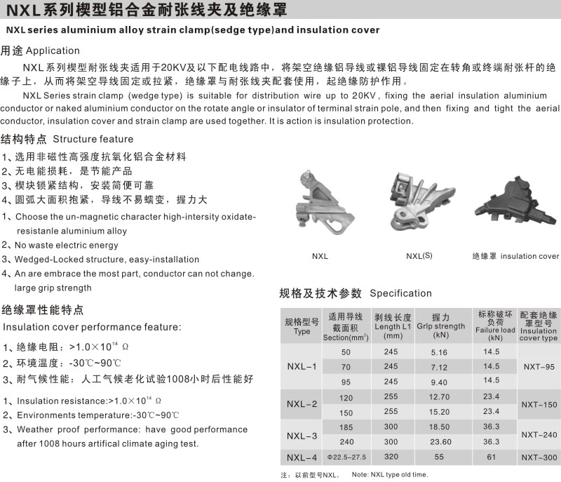 NXL系列楔型鋁合金耐張線夾及絕緣罩