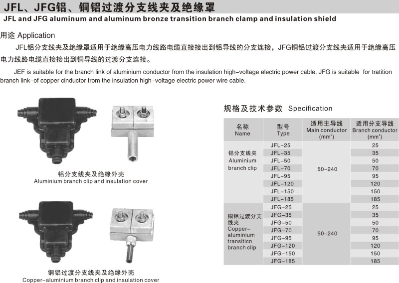 JFL、JFG鋁、銅鋁過渡分支線夾及絕緣罩