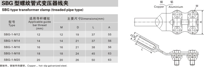 SBG型螺紋管式變壓器(qì)線夾