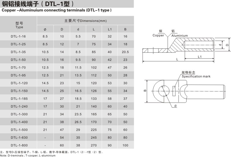 銅鋁接線端子(DTL-1型)