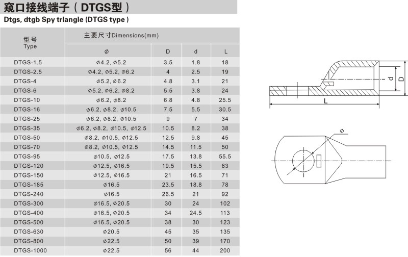 窺口銅接線端子DTGA