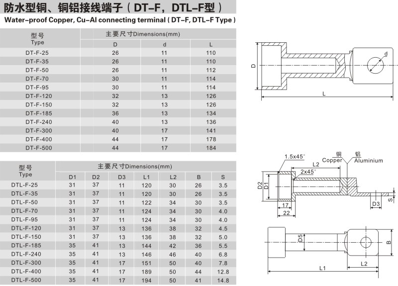 防水(shuǐ)型銅接線端子(DT-F DTL-F)