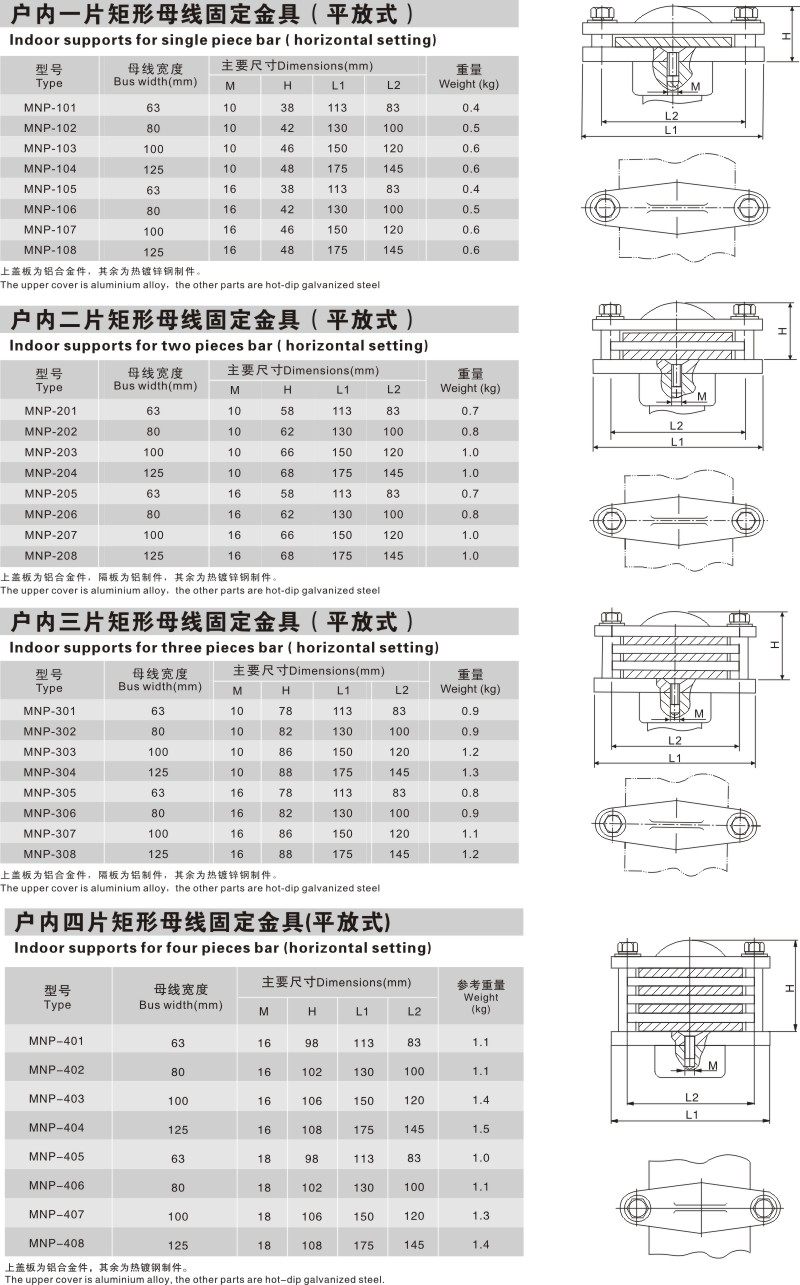 戶内矩形母線固定金具(平放(fàng)式)MNP型