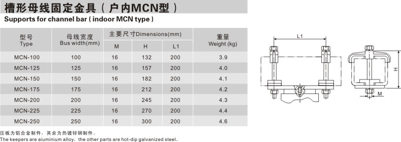 槽形母線固定金具(戶内MCN型)