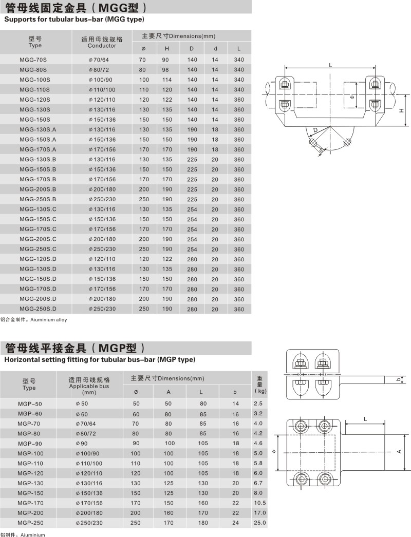 管母線端部固定金具(MGG型)
